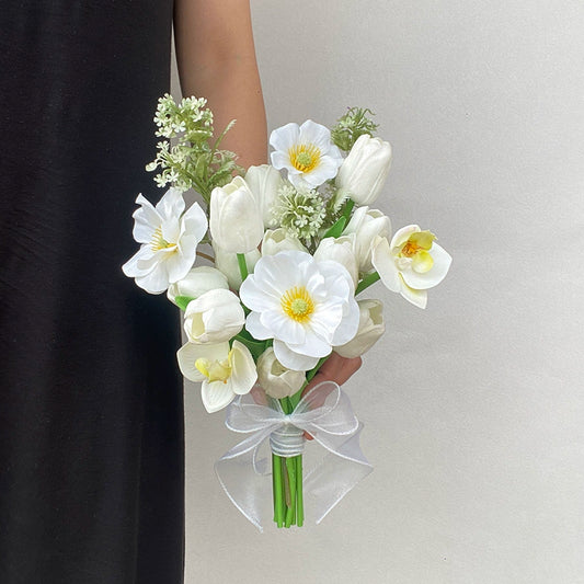 Elegant Phalaenopsis Tulip Hand‑held Silk Bouquet for Weddings & Graduations