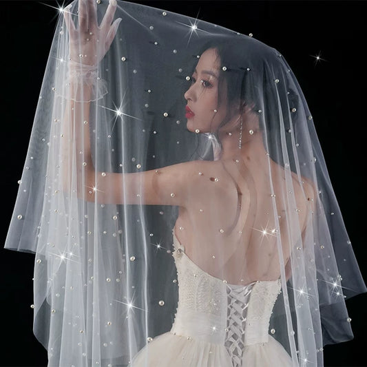 Wedding Veil Pearls Bride Photo Props Long Universal