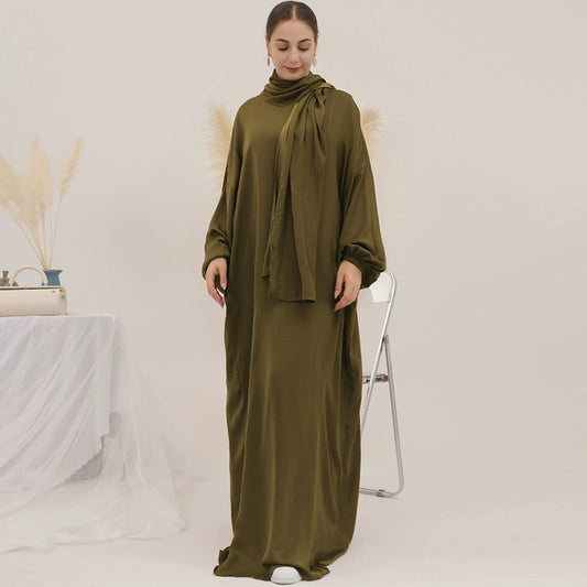Elegant Arabic Two-Piece Scarf and Skirt Set – Loose Fit Khaki