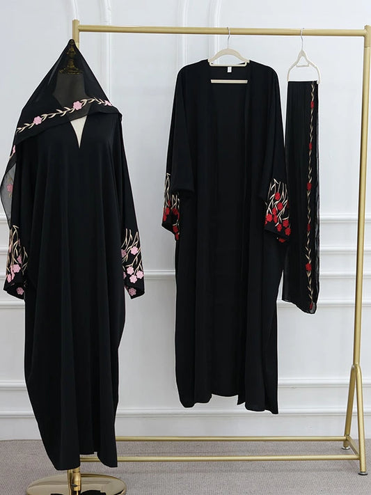 Elegant Multi?Color Cardigan and Dress Set with Floral Embroidery