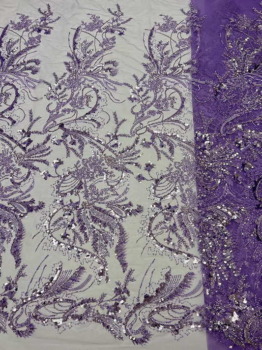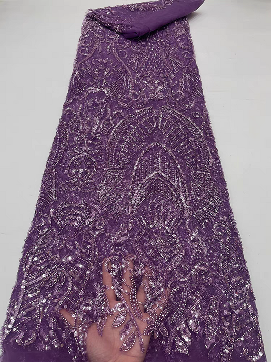 Purple beaded tube embroidery beaded mesh lace fabric sequins embroidery fabric dress performance costume wedding dress 5 yards
