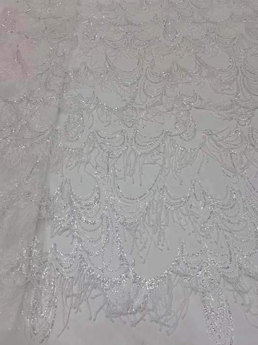 Lace fabric mesh embroidery fabric sequins beaded tube embroidery peacock feather dress wedding dress lace fabric5Y