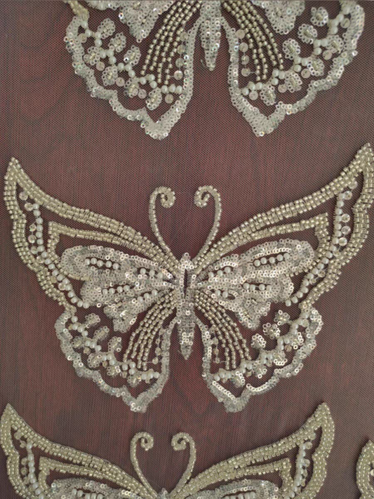 High-quality heavy-duty nail embroidery sequin butterfly style lace wedding dress mesh veil veil dress DIY lace accessories applique