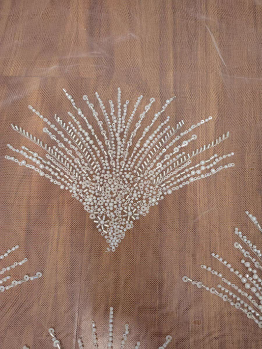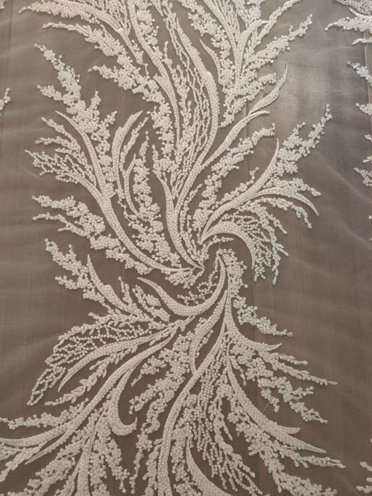 High-quality heavy-duty embroidery white beaded lace mesh fabric wedding dress women's dress DIY lace clothing accessories