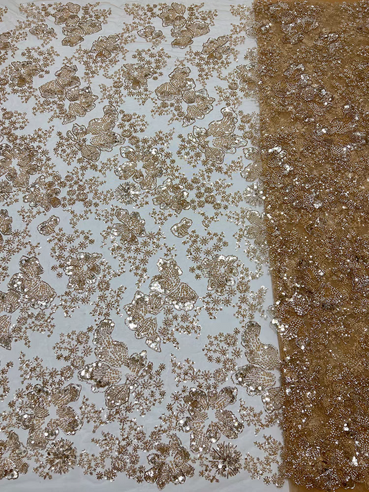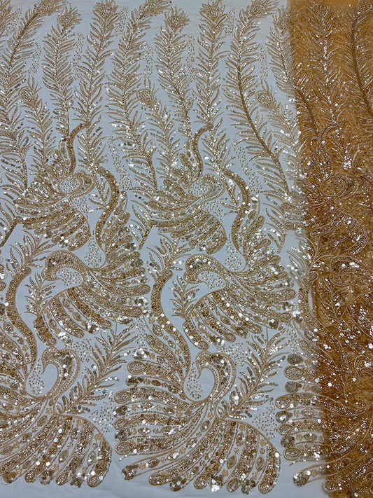 European and American gold net fabric bead tube embroidery wedding dress phoenix feather sequin embroidery fabric nail beads 6 beads