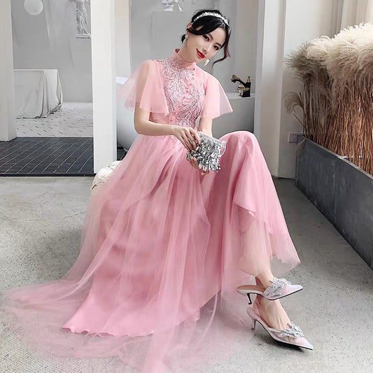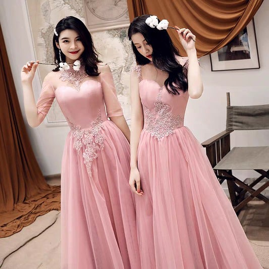 Pink bridesmaid dress 2019 new winter long section annual meeting evening dress skirt sister group wedding dress female was thin