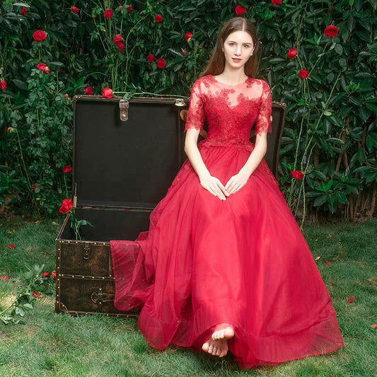 Toast clothing bride 2019 spring models get married new red wedding dress back to autumn clothes long fairy line