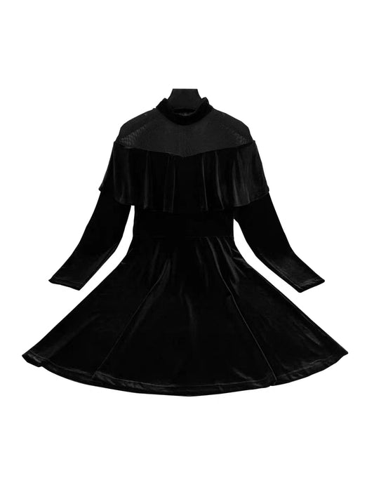 EG-SALE-AME-00153 Celebrity temperament mesh splicing velvet dress French retro skirt autumn and autumn women's small dress