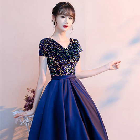 EG-SALE-AME-00207 French style Lemondtajoes annual party evening dress Tea lenght skirt female niche light luxury banquet temperament sparkling sequins
