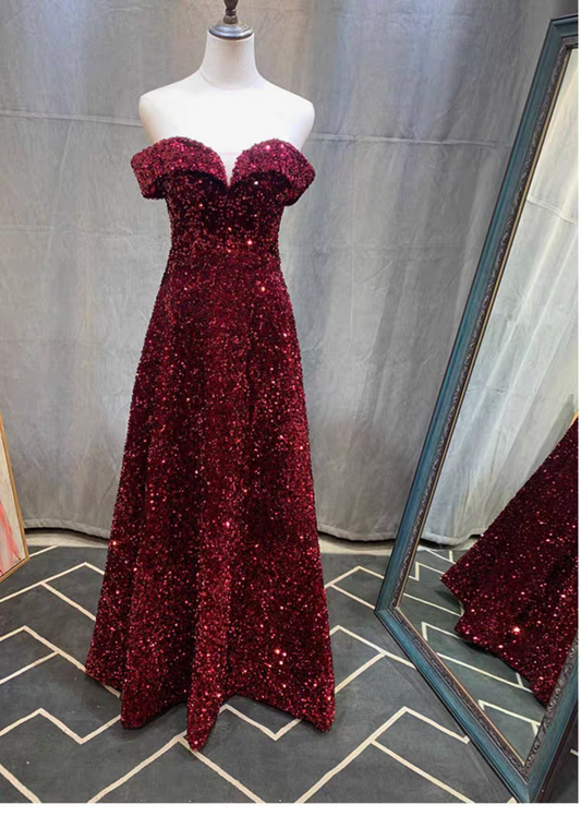 EG-SALE-AME-00200 OFF-shoulder sequined evening dress high-end banquet host , exam annual meeting light luxury