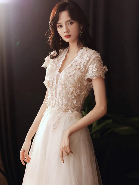 EG-SALE-AME-00178 New style evening dress mid-length long-sleeved wedding dress toast dress