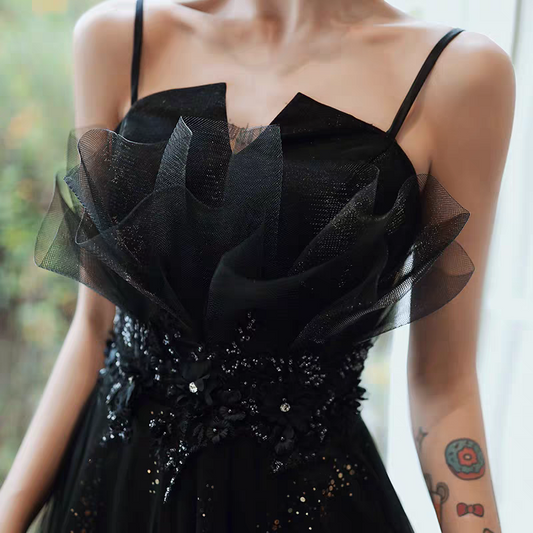 EG-SALE-AME-00195 new black long evening dress ,backless dress host suspender evening dress female