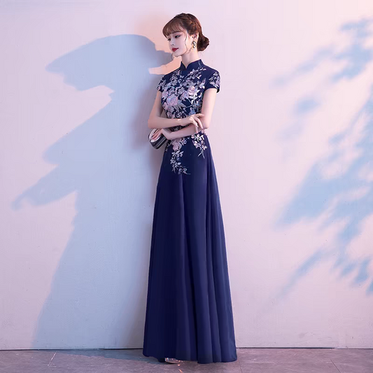 EG-SALE-AME-00141 Chinese evening dress for women new noble banquet host temperament long cheongsam chorus performance skirt