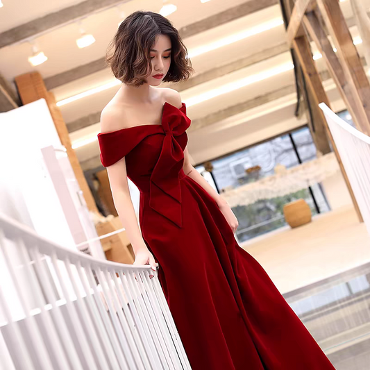 EG-SALE-AME-00196 Toast dress bride 2025 new style atmospheric wine red wedding engagement dress banquet evening dress female
