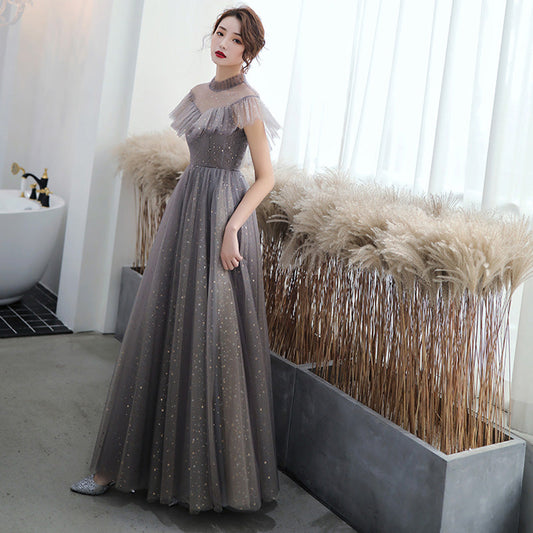 New banquet long sleeves can usually wear fairy-like dream dress birthday evening dress