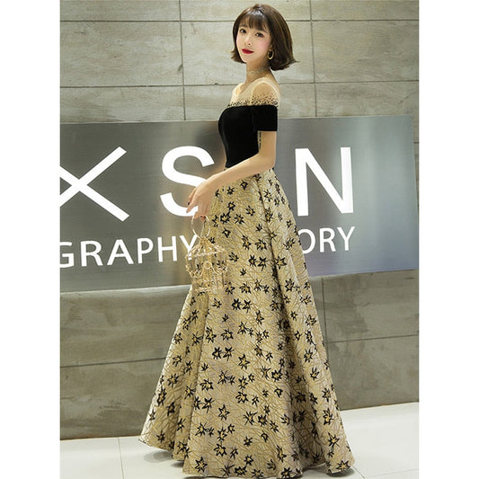 EG-SALE-AME-00104 Satin and velvet toast dress new style elegant simple and generous annual meeting long evening dress