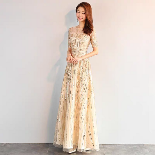 EG-SALE-AME-00102 Banquet evening dress female host champagne color temperament light luxury niche high-end high-end birthday dress
