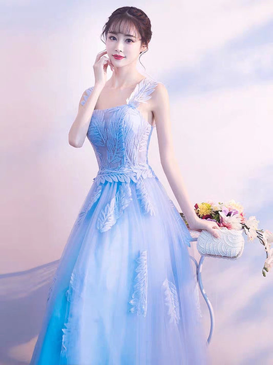 New Fashion Elegant Satin One Word Annual Meeting party banquet graduation adult ceremony blue evening dress female
