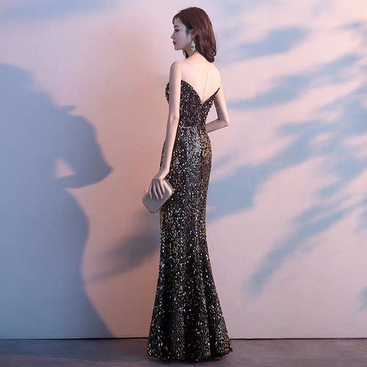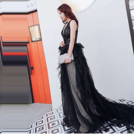 New Gas Field Queen Black Sexy Temperament Long Fishtail Host banquet annual meeting evening dress skirt female