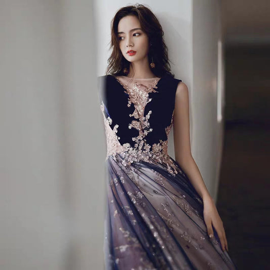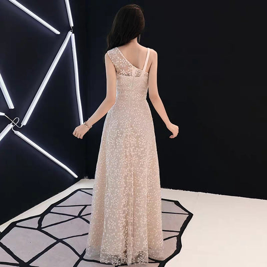 Atmospheric evening dress skirt female new banquet fashion temperament host dress sexy word shoulder long section