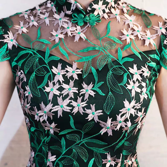 Long fishtail cheongsam 2020 new young temperament girl body-sleeve Chinese flag dress.