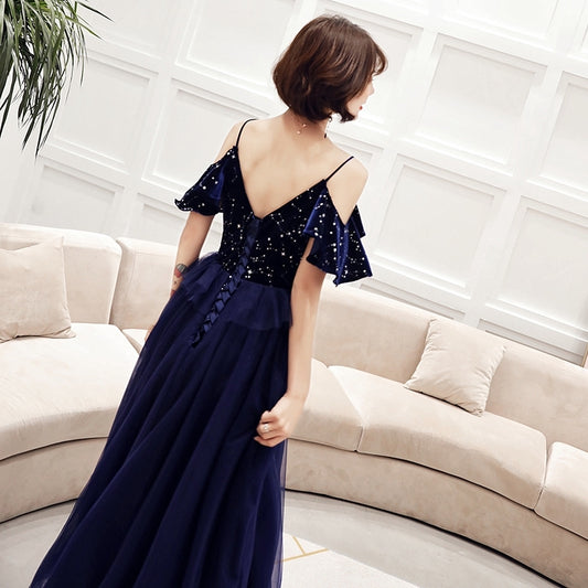 banquet evening dress sling blue long elegant sexy thin host dress