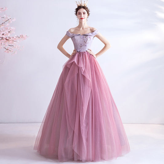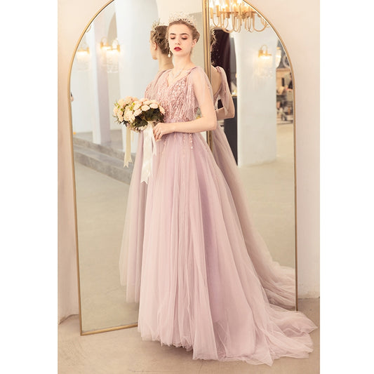 Angel troue rok, blomme pienk bruid roosterbrood aandete partytjie jaarlikse troue rok 6676. | Amehandmadesg