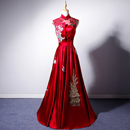 Toast 2020 spring new bride red noble Chinese cheongsam long wedding evening dress dress women back to the door.