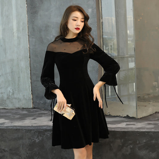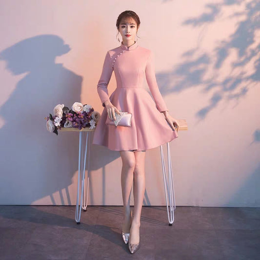 New style cheongsam dress 2019 autumn and winter young fashion girl long-sleeved modern style improved version of the dress short paragraph