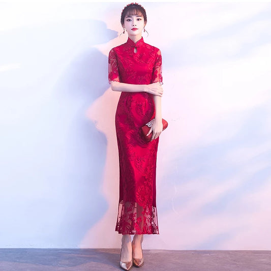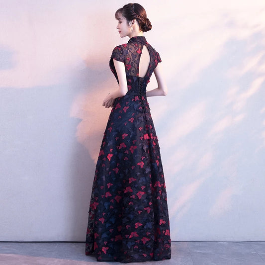 Fashion Mesh Neckline Sexy Slim Party Dress Evening Dress Female Chinese Dresss Improved Cheongsam Size S-XXL
