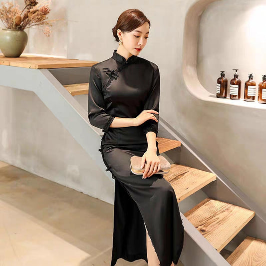 Improved version of cheongsam dress autumn elegant female long temperament low collar Chinese style fashion girl dress young models