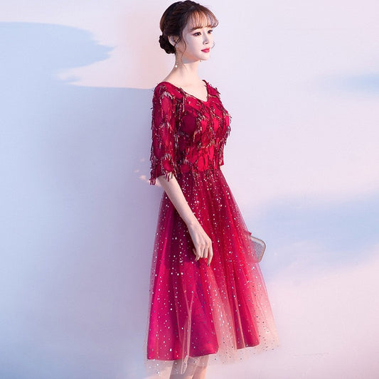 Bride Toasting Suit Celebrity ReceptionWedding Bridesmaid Dress Evening Party Dress Women Midi Dress Red Slim Elegant