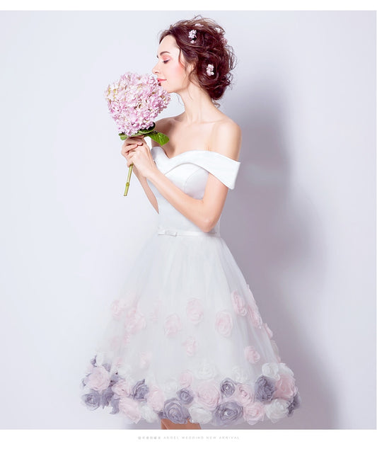 High Quality Pretty Sweetheart Pink&Purple Roses Decorated Style Bridesmaid Dress 224