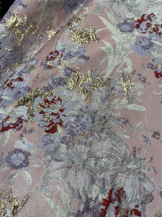 FAB-BROC-020 European and American gold and silver silk heavy relief flower jacquard fashion fabric spring and autumn dress tutu clothing brocade fabric