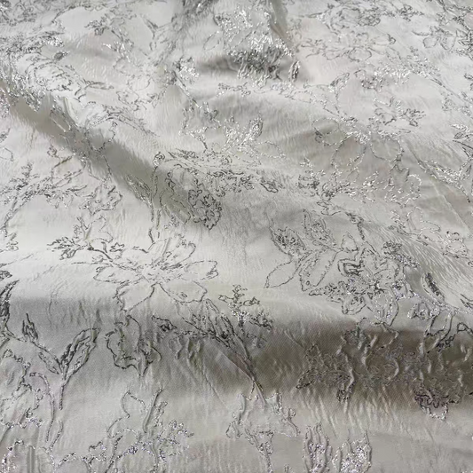 FAB-BROC-016 Spring and Autumn European style three-dimensional relief silver silk dark pattern jacquard fabric dress A-line skirt clothing fabric high-grade crisp