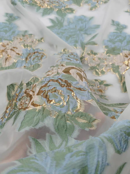FAB-BROC-023 Spring and summer breathable gold silk organza cut flower fabric fresh swing skirt wedding dress jacquard fabric advanced customization