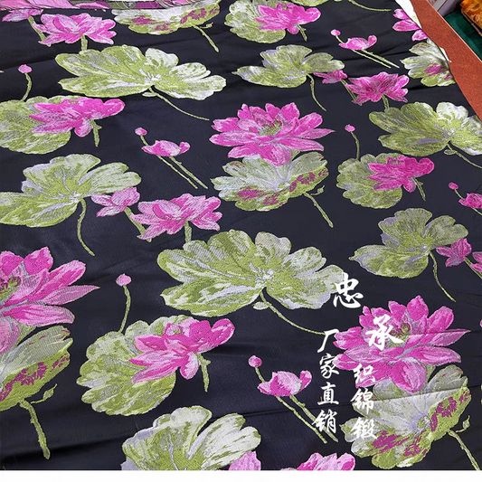 FAB-BROC-019 [The lotus in the sun is red] High-end satin cheongsam Chinese jacket vest pants pillow pillow fabric black