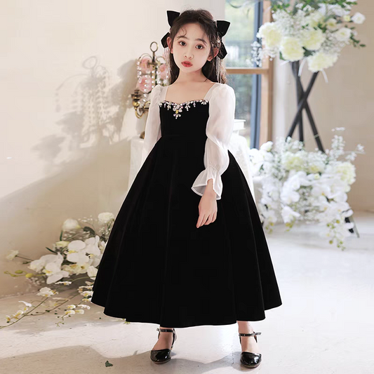 EG-SALE-AME-00134 Elegant Black Piano Performance Dress for Girls - Ame Handmadesg