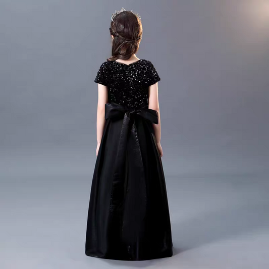 EG-SALE-AME-00110 Handmade Sequin Princess Dress - Bespoke Black Gown for Girls' Performances by Ame Handmadesg | The Art of Bespoke Bridal Couture in Singapore | Amehandmadesg
