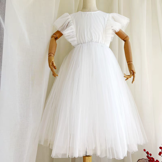 EG-SALE-AME-00160 Tulle Flower Girl Dress - White - Sizes 2-14 Years - Ame Handmadesg