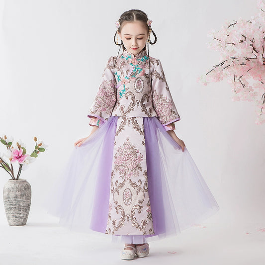 Elegant Girls' Chinese Hanfu Dress Autumn Spring Cheongsam Traditional Performance Outfit