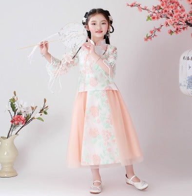Traditional Chinese Hanfu Summer Dress for Children - Elegant Cultural Clothing