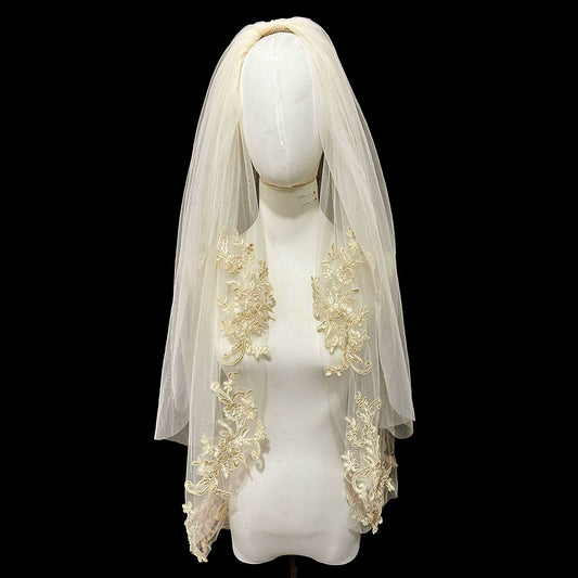 Champagne Double-Layer Bridal Veil | Amehandmadesg
