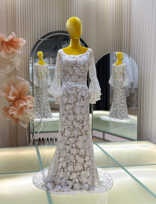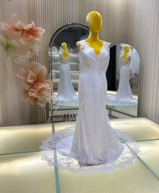 BG-WED-AME-10125 WEDDING GOWN PREMIUM FABRIC FULL LACE WITH BEADS SIZE M BUST 84 WAIST 69