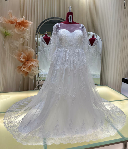 BG-WED-AME-10122 WEDDING GOWN PREMIUM FABRIC FULL LACE SIZE 4XL BUST 102 WAIST 85