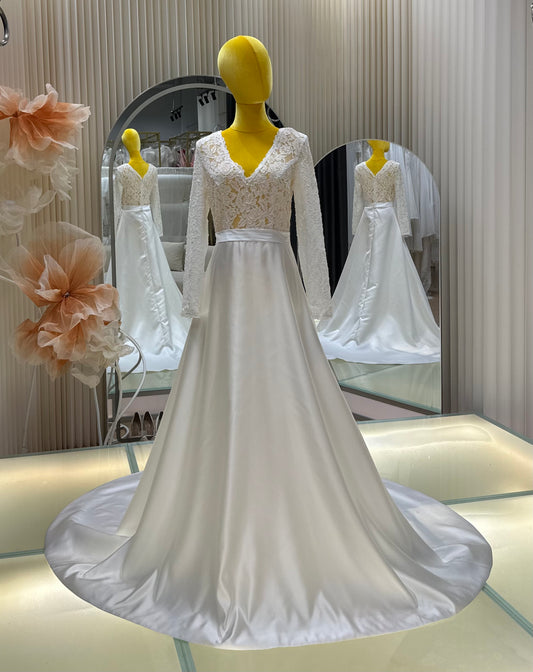 BG-WED-AME-10105 WEDDING GOWN LUX FABRIC HALF LACE SIZE S BUST 83 WAIST 66