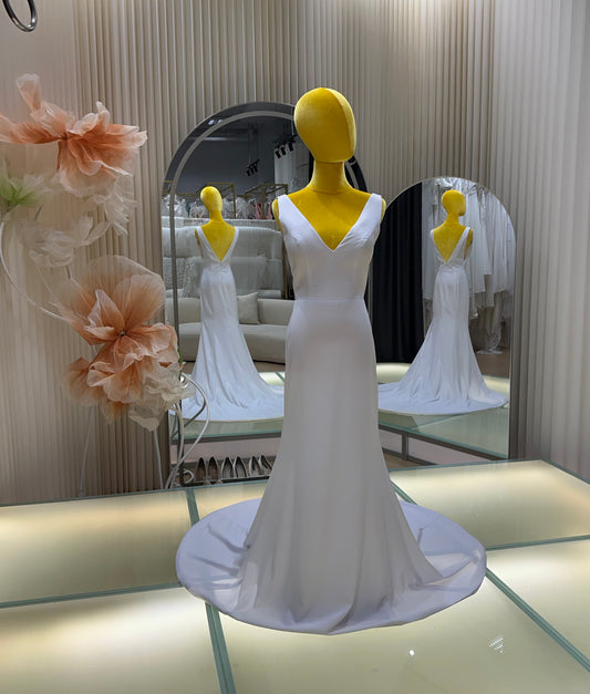 BG-WED-AME-10119 WEDDING GOWN FABRIC PLAIN WITH PLEATED SIZE M BUST 85 WAIST 68 HIPS 97