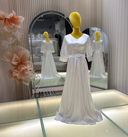 BG-WED-AME-10111 WEDDING GOWN PREMIUM FABRIC PLAIN WITH PLEATED SIZE XL BUST 91 WAIST 77