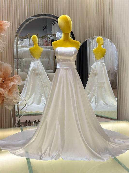 BG-WED-AME-10135 WEDDING GOWN FABRIC PLAIN WITH PLEATED SIZE S BUST 82 WAIST 68