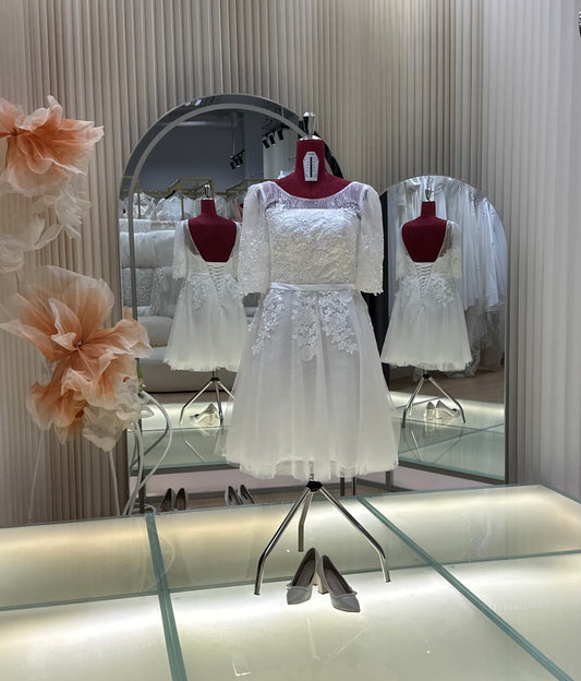 BG-WED-AME-10131 WEDDING GOWN FABRIC PLAIN SHORT SIZE M-XL BUST 84-93 WAIST 70-76